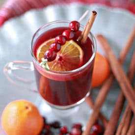 Get toasty this Thanksgiving with this Cranberry Orange Mulled wine. Red wine simmers in the slow cooker along with orange, cinnamon, cranberries, and cloves. A couple of glugs of brandy add a nice little kick, too.