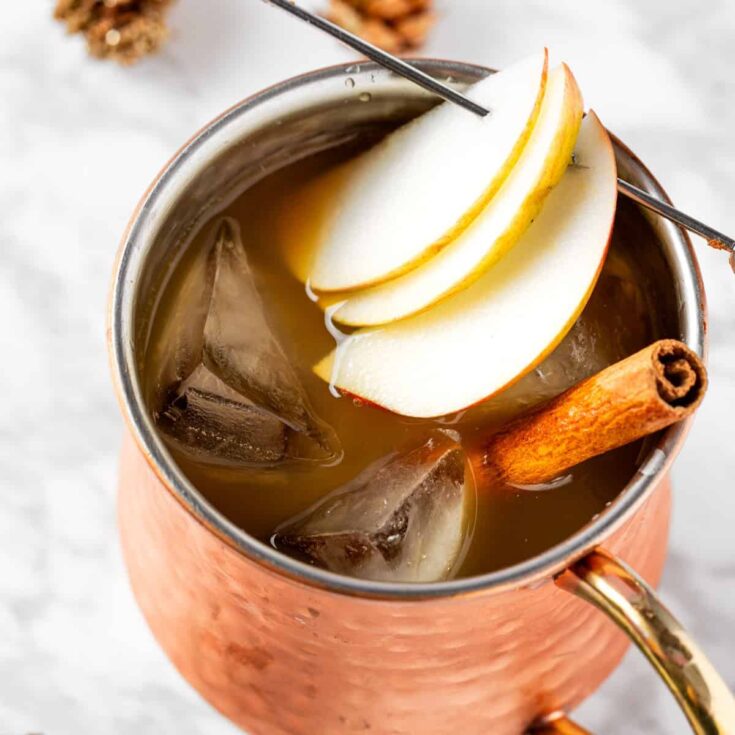 This Fall Apple Cider Moscow Mule is a quick 5 minute cocktail that is perfect for Thanksgiving Day.